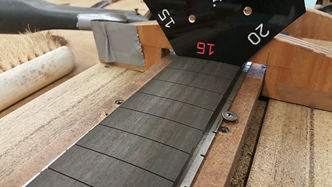 Fretboard slotting setup.