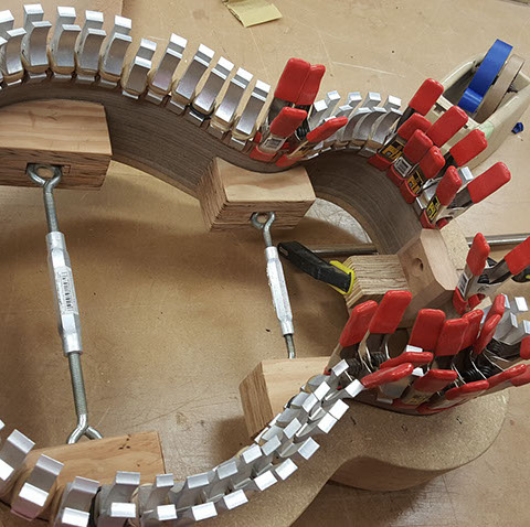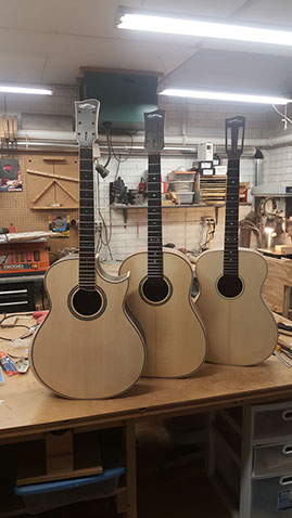 Here are a few shots of guitars in progress. A more organized page will soon follow.